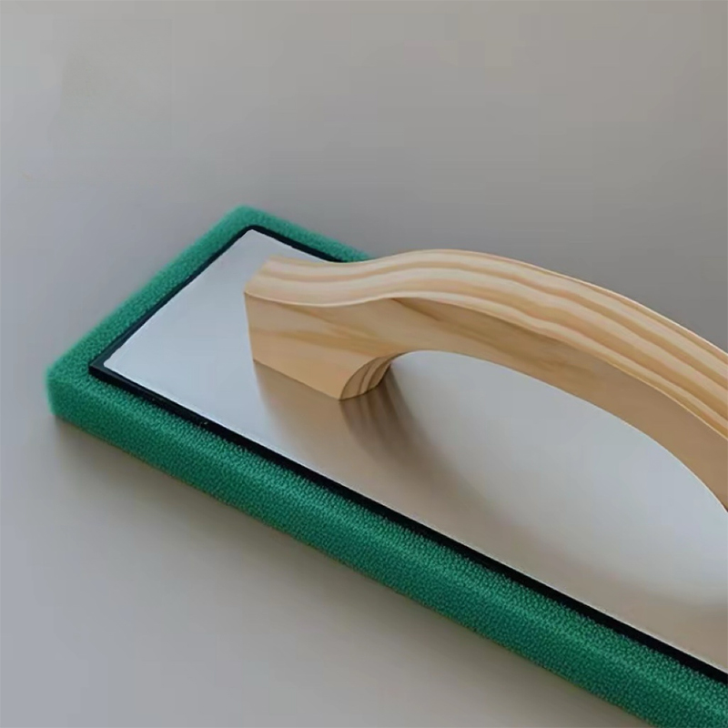 Mud plastering board, made of sponge material, is a tool used in construction to apply, level, and decorate materials such as plaster, gypsum, putty, etc. It usually consists of a flat sponge surface and a handle, which is often made of wood or plastic to provide a comfortable grip. In plastering work on walls or ceilings, craftsmen use plastering boards to evenly apply plaster to the surface, and then finely trim the edges or tips of the boards to achieve a smooth or specific texture effect.